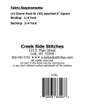Finished size options include a 14" x 36" runner, 14" x 28" runner and a 22" x 22" topper. Project is pre-cut friendly and can be made with 5" squares (charm pack) along with yardage for the binding.